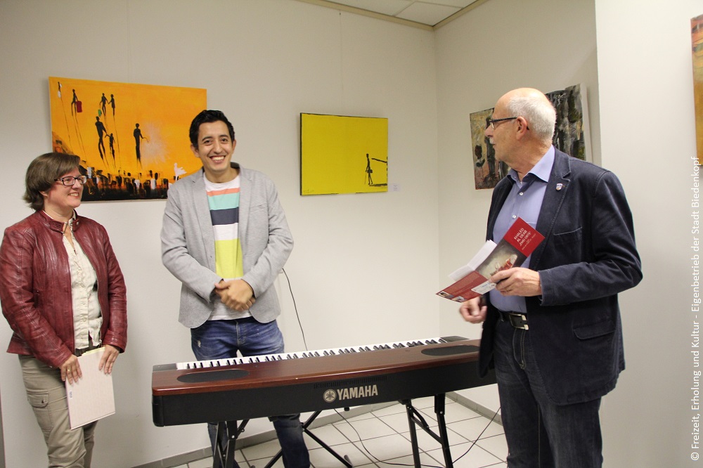 Die abschließende Ausstellung im Rahmen des Projekts Neuanfänge mit Beteiligung junger Geflüchteter in Biedenkopf war ein großer Erfolg. Gut einhundert Besucher*innen drängten sich im „Treff“ der Bürgerinitiative Sozialpsychiatrie und im Rathaus, wo neben der neuen Ausstellung des syrischen Künstlers Khaled Al Deab auch die Ergebnisse des Workshops „Bildung fängt mit Bildern an“ gezeigt wurden.