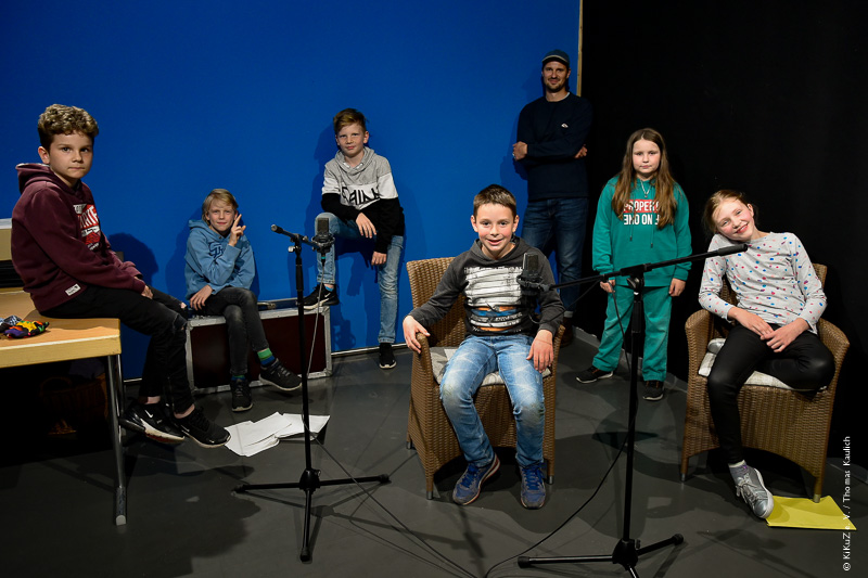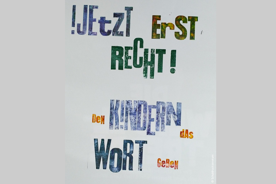 Kinder aus verschiedenen Schulen drucken Beiträge für eine gemeinsame analoge Schulzeitung.