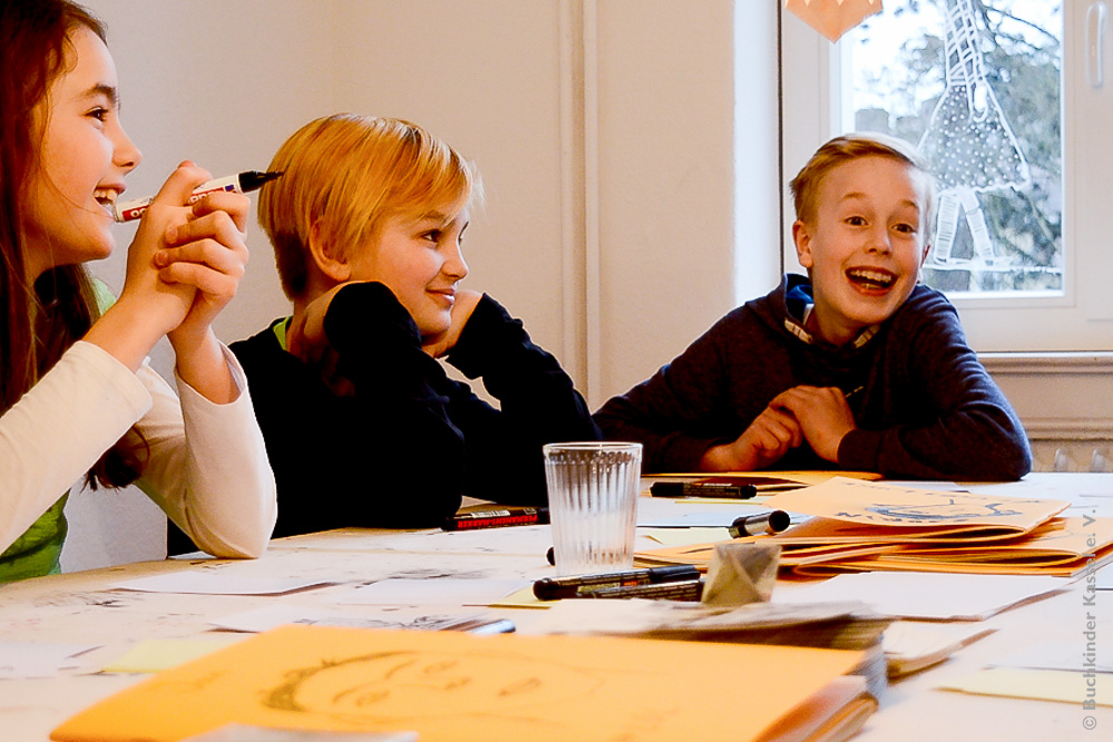Kinder und Jugendliche erforschen narrative Möglichkeiten durch künstlerische, gestalterische und mediale Prozesse in der Buchkinderwerkstatt.