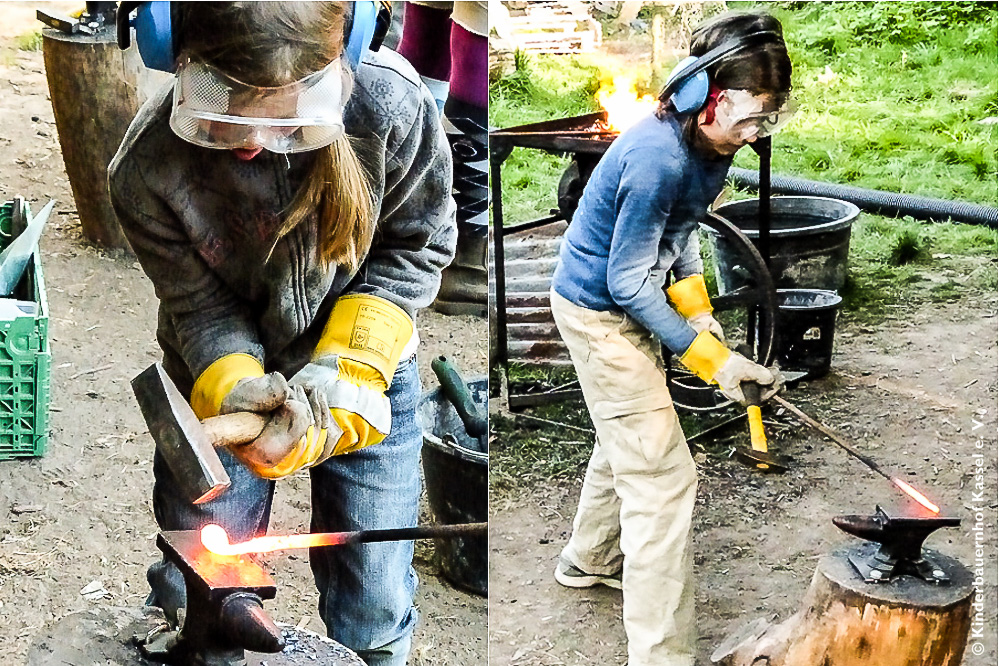 Erlernen und Anwenden verschiedener alter Handwerkstechniken für Wolle, Holz und Metall für alle Kinder ab 8 Jahren auf dem Kinderbauernhof mitten in Kassel.