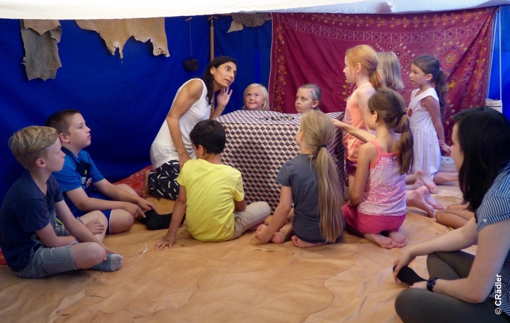 (Lebens)Räume prägen uns – wir gestalten sie mittels unserer Vorstellung. Durch Erzählung, Musik und Tanz erforschen und eignen wir uns Räume an. Diese kreativen Prozesse stößt Konolino mit dem Raum „Nomadenzelt“ an und fordert die teilnehmenden Kinder und heraus, mit Sprache, Bewegung und Video ihre Räume zu gestalten.