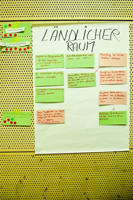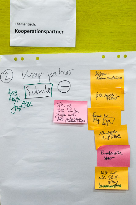 Fünf Arbeitsgruppen verteilten sich sodann auf die unterschiedlichen Räumlichkeiten des KFZ und hatten eine gute Stunde Zeit, sich über das gewählte Thema auszutauschen. Großen Andrang gab es beim Thema Nachhaltige Projektarbeit – hier wurde tatsächlich in zwei Gruppen diskutiert. Weitere Themen waren funktionelle Zielgruppenansprache, Arbeit mit Kooperationspartner*innen und spezielle Bedingungen im ländlichen Raum. Auch nach dem Auflösen der Thementische blieben die Teilnehmer*innen noch lange im angeregten Gespräch bei Kaffee und Kuchen beisammen.