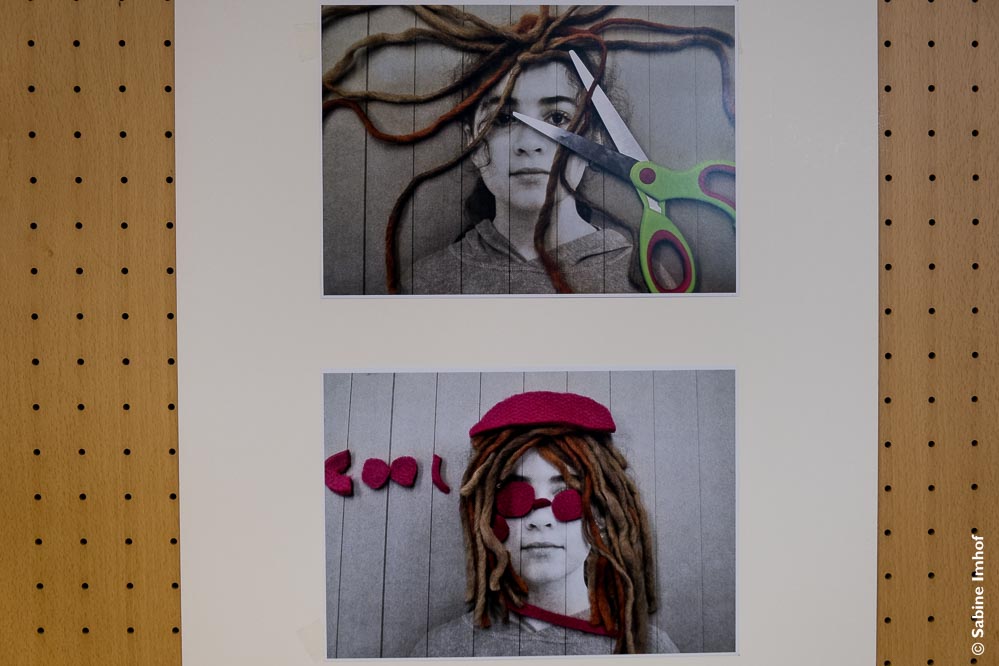 Die Umsetzung des Themas Kunst trifft Medien an der Grundschule war plastisch nachvollziehbar gehalten, um einen ersten Einstieg in das Thema Medien zu bieten. Aus der Beschäftigung mit Mustern der verschiedenen in der Klasse beteiligten Kulturen entstanden Kratzbilder in schillernden Farben. Zudem konnte jedes Kind eine kleine Bildergeschichte in Buchform entwickeln. Wem zwischendurch nach künstlerischer Beschäftigung war, dem gab Zoya Sadri die Anregung, ein Malbuch anzufangen und die Kinder malten diese schließlich leidenschaftlich voll. Bei den Älteren wurde an verschiedenen interdisziplinären Methoden gearbeitet: Stop-Motion, Comic und Fotocollagen. Dabei wurden die vorhandenen Medien, wie eigene Smartphone der Teilnehmer*innen genutzt und beispielsweise mit Comic- oder Stop-Motion-Apps gearbeitet. Die Fotos wurden direkt mit Collagetechniken bearbeitet und anschließend erneut fotografiert, was einen interessanten 3-D-Effekt im Foto entstehen ließ.
